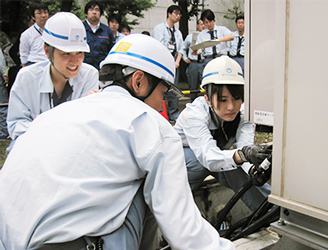 災害時に社員が適切な行動を迅速に行えるよう、訓練を定期的に行い、課題を整理し、心構えを醸成し続けています。